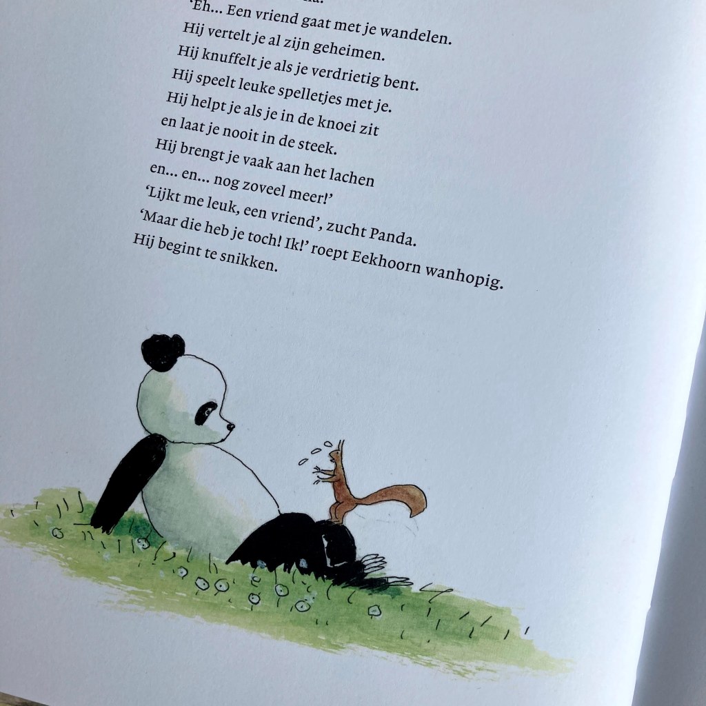 De lieve vrienden Panda en Eekhoorn zijn terug in een prachtig prentenboek dat heel wat aandacht heeft voor gevoelens. In zes warme verhalen ontdekken Panda en Eekhoorn hoeveel ze voor elkaar betekenen. Ze dragen zorg voor elkaar, missen elkaar als ze niet samen zijn, beschermen elkaar als ze bang zijn, ze troosten, maar hebben boven alles samen heel wat plezier.