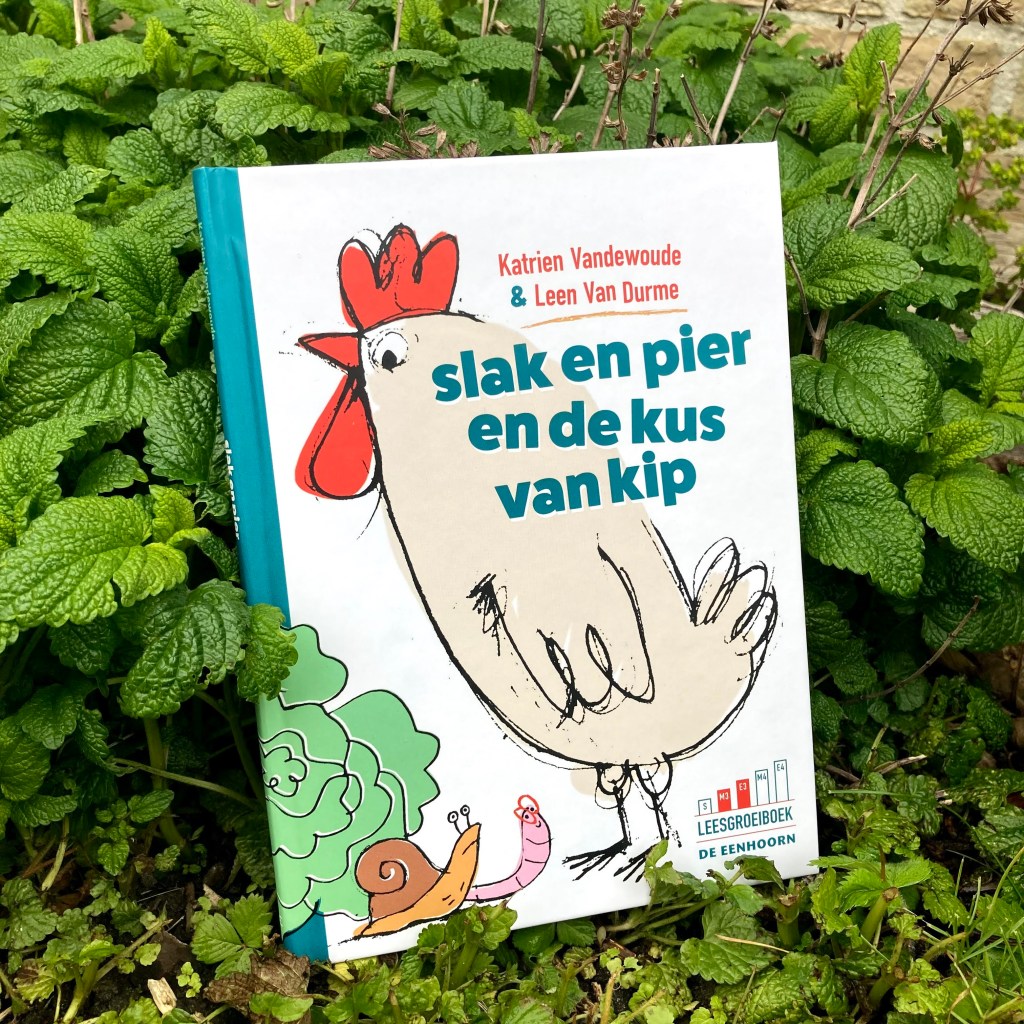 “Slak en pier en de kus van kip” is een grappig, herkenbaar verhaal voor eerste lezers over rivaliteit en vriendschap.
