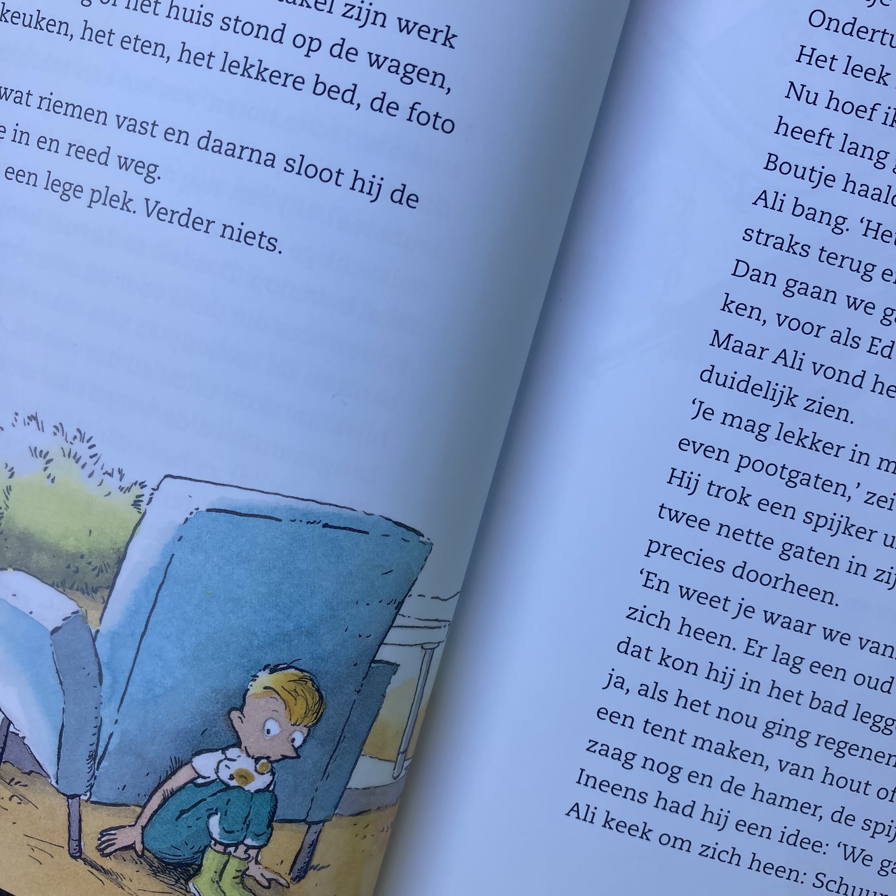 Mirjam Oldenhave schrijft al jaren kinder- en jeugdboeken en ken je ongetwijfeld van de Mees Kees-reeks. In deze nieuwe verhalenbundel om voor te lezen of zelf te lezen vertelt ze het verhaal van een jongen die er opeens helemaal alleen voor staat. Gelukkig is hij ontzettend creatief en heeft hij vrienden die hem te hulp schieten. 23 hoofdstukken lang kan je meegenieten van de avonturen van Boutje. Niet alleen zijn het verhalen over moed, doorzettingsvermogen, omgaan met tegenslagen en vriendschap, maar er is ook aandacht voor de enorme hoeveelheid rommel die we met zijn allen verzamelen en weggooien. De vele kleurrijke illustraties van Rick de Haas, maken het plaatje compleet. Een grappig, avontuurlijk (voor)leesboek waar kinderen van 5 tot 8 jaar geen genoeg van zullen krijgen!