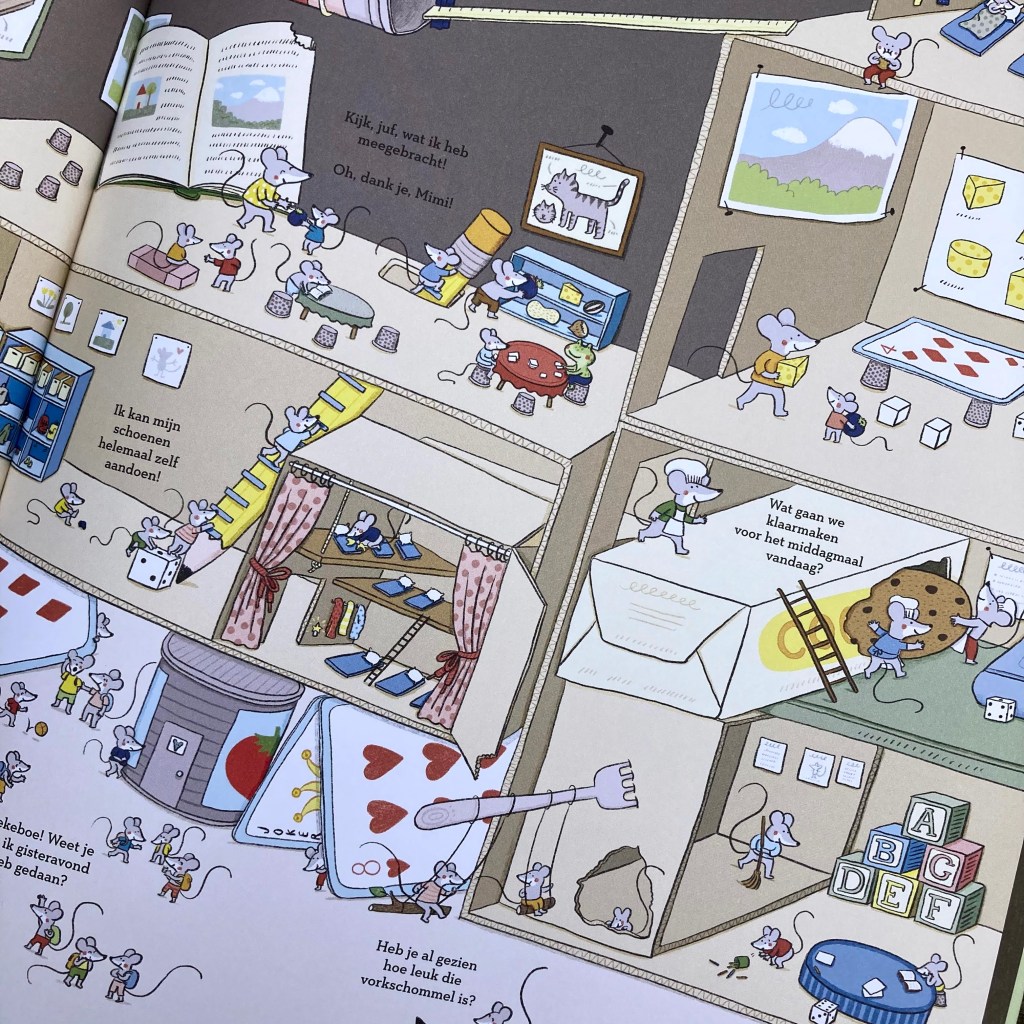 “1, 2, 3 naar school” is een prachtig zoek- en kijkboek dat kinderen met alle aspecten van een schooldag laat kennismaken.