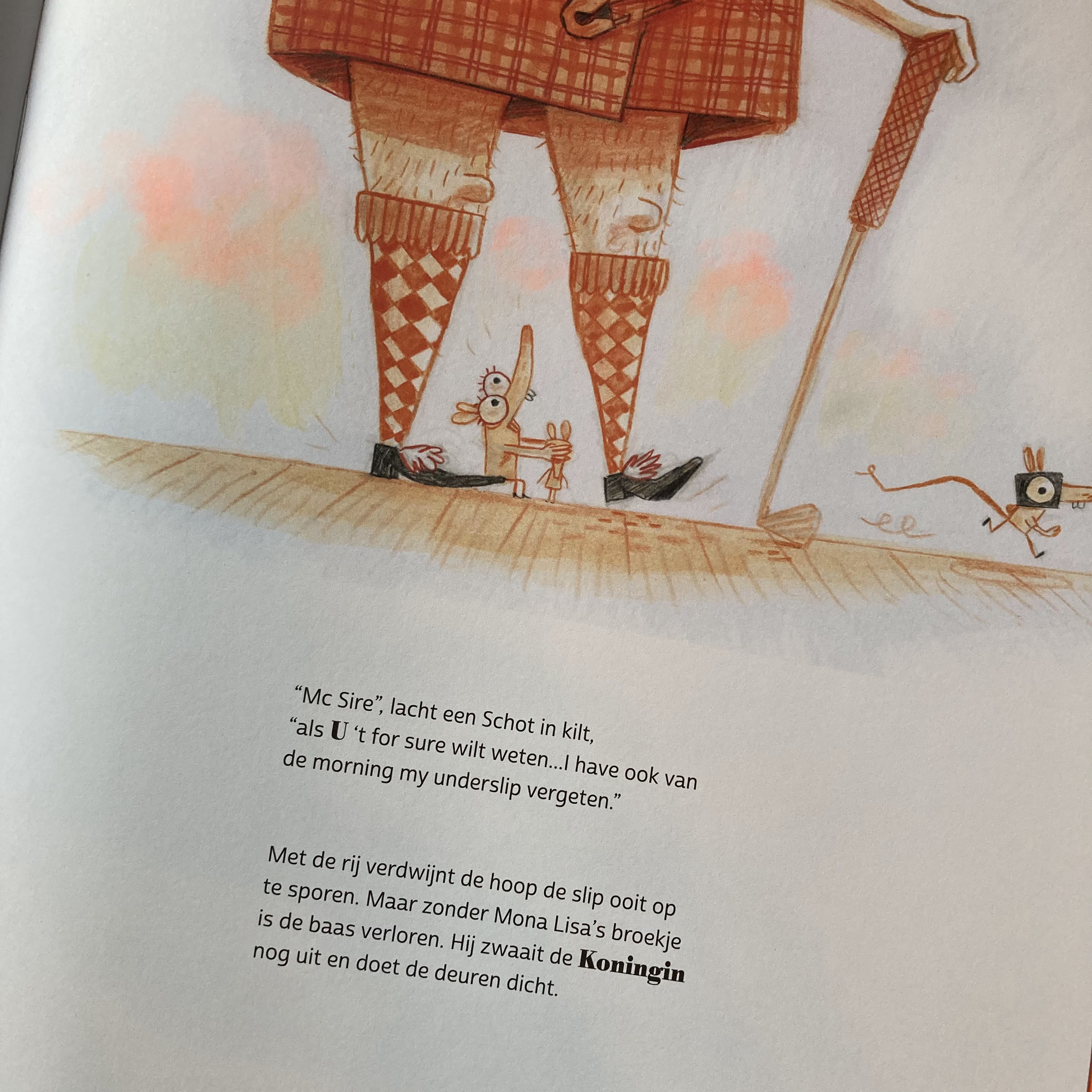 Kim Crabeels schrijft sedert 2013 de leukste kinderboeken. Deze keer werkte ze samen met illustrator Melvin. Samen maakten ze ontzettend grappig en ondeugend prentenboeken vol onderbroekenlol. Geen kind (of volwassene) die hieraan kan weerstaan. De tekst is hoofdzakelijk op rijm en zit barstensvol kleine grapjes. Met zinnen als “Verhipjes! Een boef zit met zijn tengels aan mijn slipjes” kan het niet anders dan dat je pagina na pagina zal gniffelen of schateren van het lachen. De illustraties in blauw en oranje tinten zitten vol kleine, grappige details en bevatten heel wat knipogen naar grote, bekende kunstwerken. Een ontzettend geslaagd en ietwat gedurfd prentenboek waar kinderen vanaf 5 jaar zullen van smullen! Een aanrader van formaat!