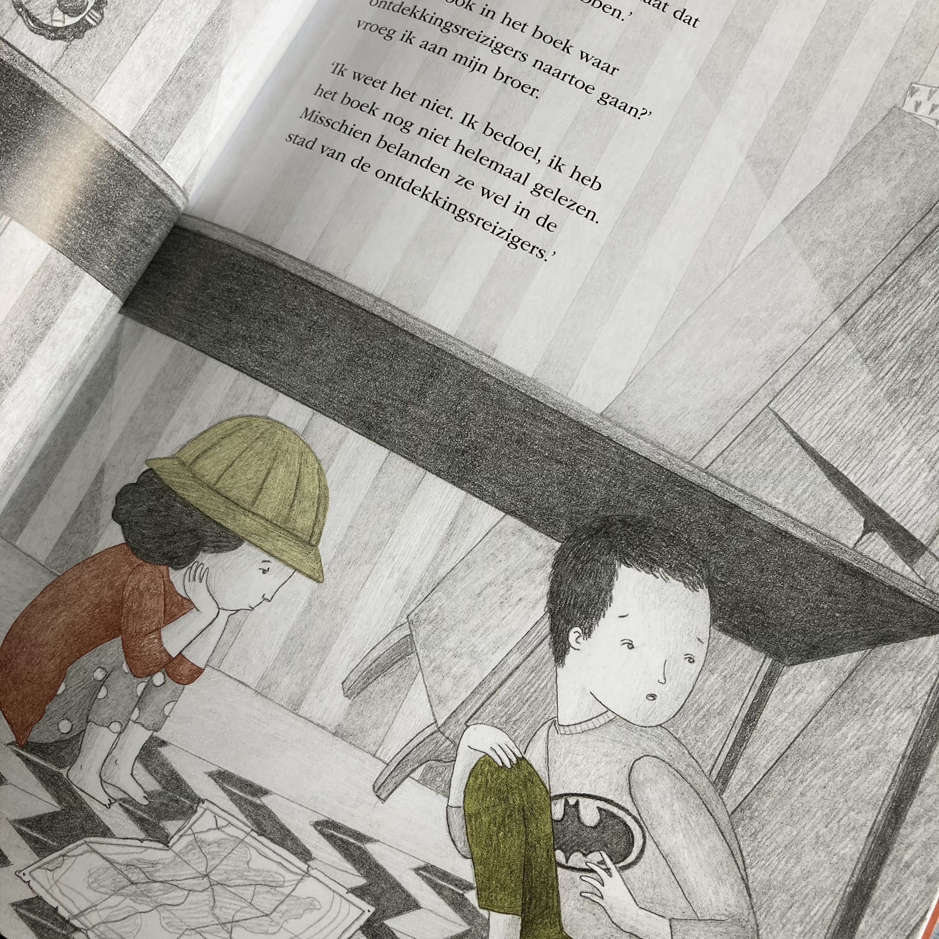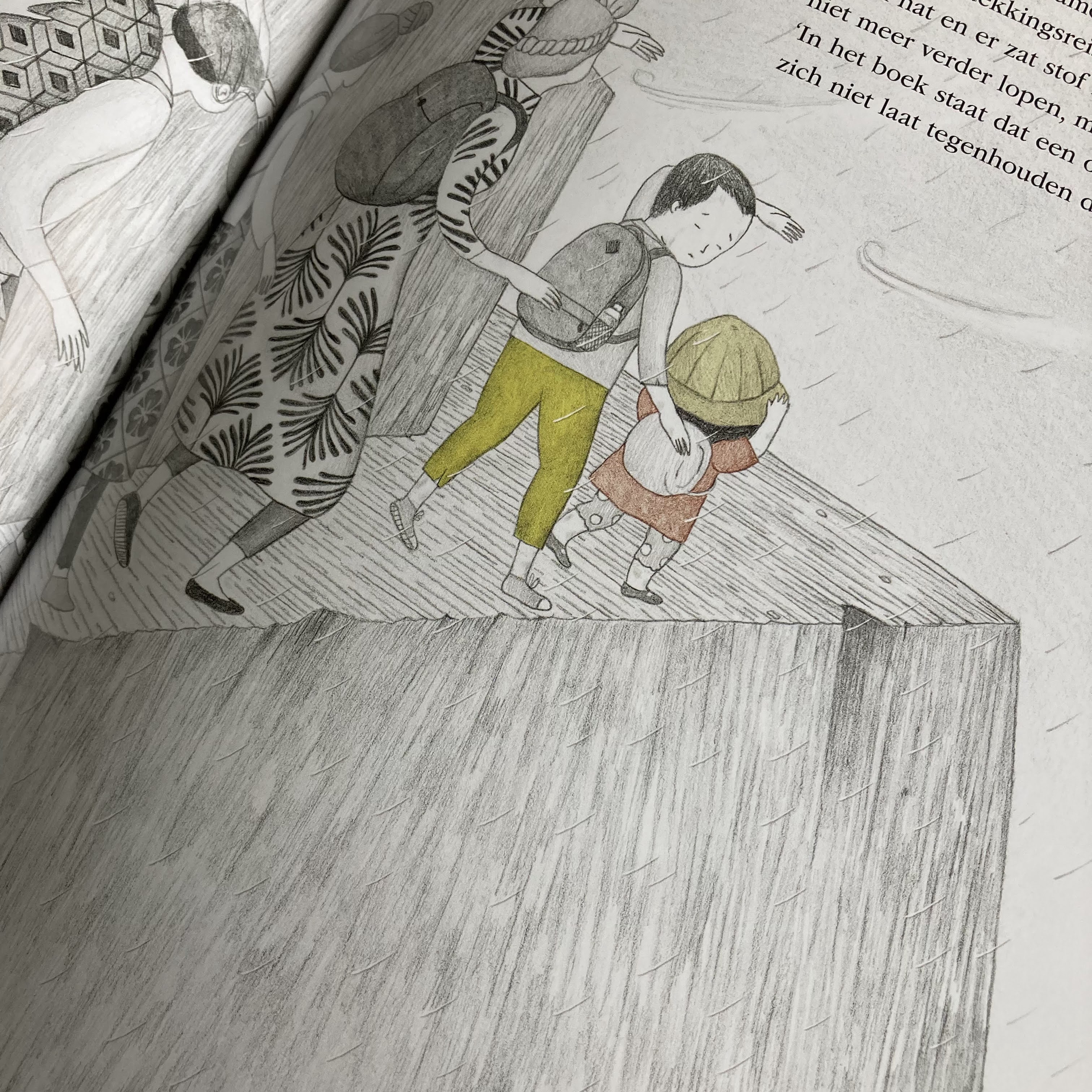 Dit Iraanse prentenboek van Shahrzad Shahrjerdi en Ghazal Fatollahi vertelt het aangrijpende verhaal van twee kinderen die moeten vluchten als de oorlog te dichtbij komt. Zowel de tekst als de illustraties zijn eenvoudig maar erg krachtig. Zo worden enkel de kinderen in kleur weergegeven tijdens hun tocht. Pas als ze in veiligheid zijn, krijgt hun wereld weer kleur. Dit boek is enorm waardevol en kan op school zowel in de kleuterklas als in de lagere school ingezet worden. Dit aangrijpende verhaal biedt heel wat mogelijkheden om kinderen in gesprek te gaan over oorlog en vluchtelingen. Een aanrader voor elke schoolbibliotheek, maar het zal ook thuis tot zijn recht komen bij kinderen die vragen hebben rond deze thema’s.