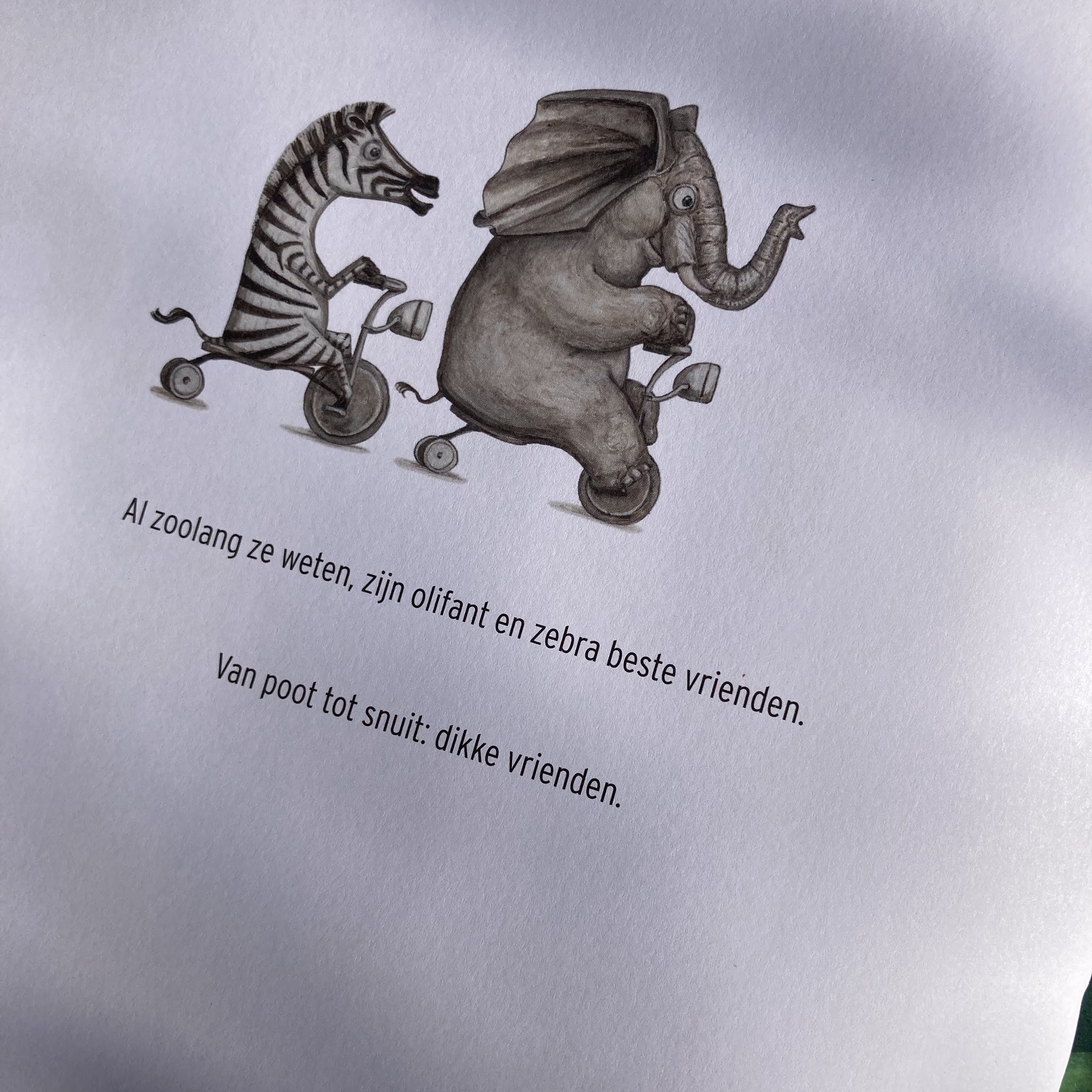 Olifant en Zebra zijn al zolang ze het weten beste vrienden. Ze steunen elkaar als het moeilijk gaat, samen vormen ze een muzikaal, dansend duo en naast hun vele verschillen, hebben ze ook heel wat gemeen. Samen doen ze wel eens wat niet mag of schieten ze hun andere dierenvrienden te hulp. En net als alle andere vrienden, maken ze ook wel eens ruzie.