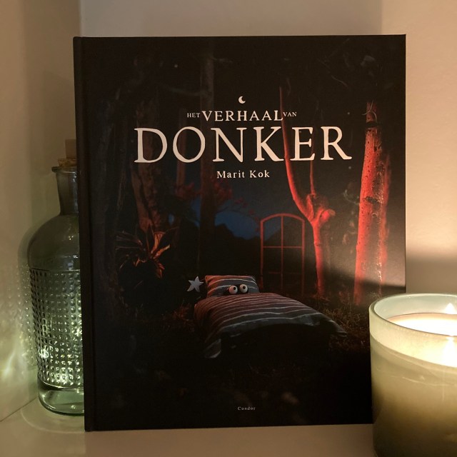 Donker wordt bang als de nacht opkomt. De lichten verdwijnen en schaduwfiguren komen tevoorschijn. Helemaal alleen, vindt hij het echt griezelig. Tot hij een lichtje ziet en het begint te volgen. Hij moet zijn angst overwinnen, maar maakt zo al snel kennis met al het moois wat de nacht te bieden heeft. Kostbare schatten, een zee van rust en de mooiste dromen komen op zijn pad. Hij ontdekt hoe mooi en sfeervol slapengaan kan zijn.Dit is het debuut van Marit Kok. Wat startte als een idee voor een kortfilm groeide uit tot een bijzonder prentenboek waarvoor Marit in haar studio het decor met de hand creëerde. Deze gedetailleerde decors werden gemaakt met een hele resem materialen, van klei tot hout, over plantjes en steentjes tot takjes. Het resultaat is een bijzonder warm en sfeervol prentenboek dat ertoe aanzet met kinderen over de nacht in gesprek te gaan. Het is een kans om angsten te overwinnen en het moois wat de nacht te bieden heeft te tonen. Het fijne verhaal op rijm maakt het plaatje compleet. Marit Kok bewijst met dit debuut dat ze heel wat in haar mars heeft en doet absoluut smaken naar meer. Een origineel, sfeervol prentenboek dat vertrouwen zal geven aan kinderen die bang zijn in het donker.