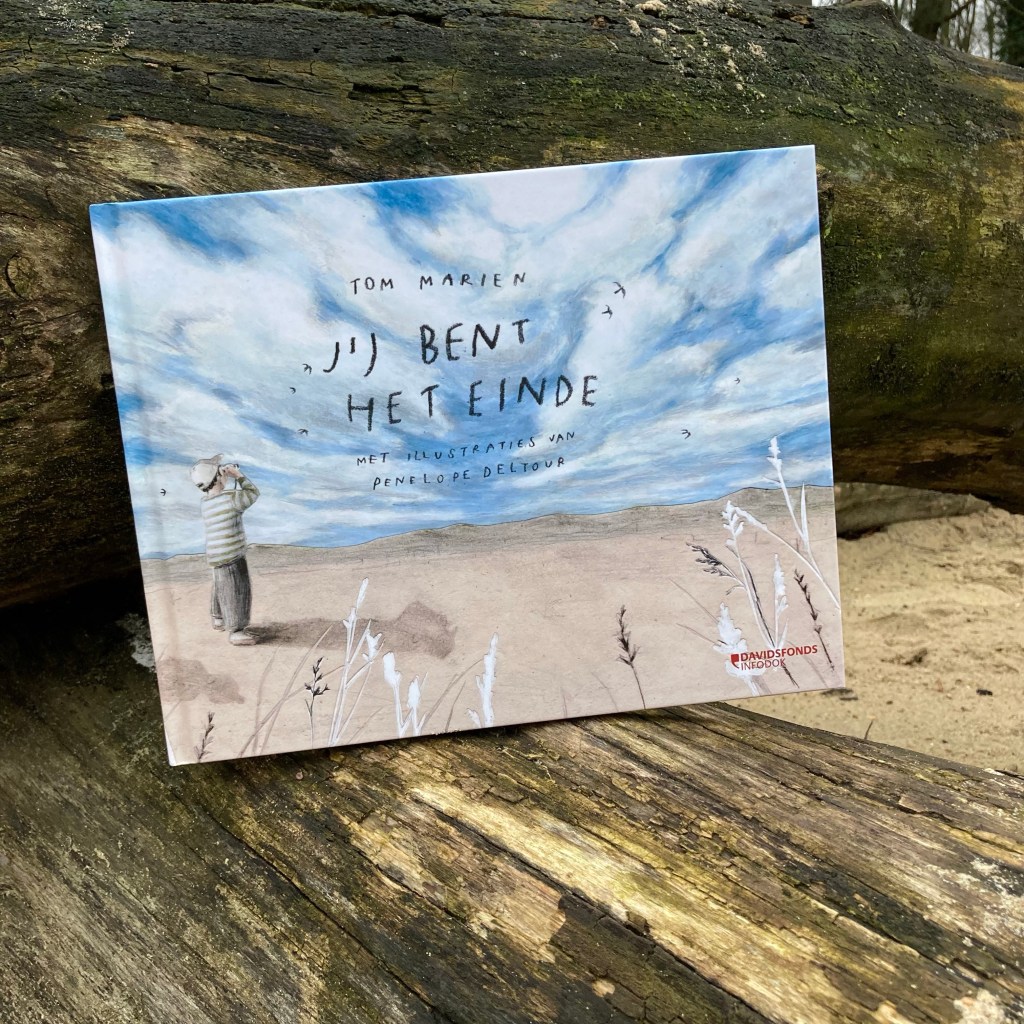 “Jij bent het einde” is een filosofisch prentenboek van Tom Mariën en Penelope Deltour over zoeken, misschien niet vinden en toch blijven doorgaan.