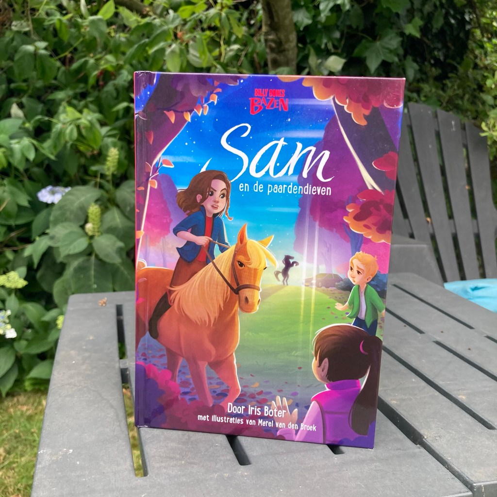 Geen fan van voetbal, maar wel van paarden en paardrijden? Dan is er de nieuwe Billy Bones Bazen reeks rond Sam, een grote paardenliefhebber. Sam is helemaal gek op paarden en brengt het liefst haar dagen op de manege door met pony Jip. Als Sam echter opmerkt dat twee mensen de manege in het oog houden, vermoedt ze dat er paardendieven aan het werk zijn die Wodan willen stelen. Wanneer tijdens de logeerpartij voor haar verjaardag midden in de nacht een auto met trailer op manege stopt, schiet Sam met haar vrienden in actie om de dieven te verjagen. Dit verhaal met veel paarden, een vleugje spanning en herkenbare personages zal jonge paardenfans zeker kunnen bekoren. De korte, eerder eenvoudige zinnen worden afgewisseld met hier en daar wat moeilijkere woorden, zodat kinderen tijdens het lezen, stap voor stap, hun woordenschat uitbreiden. De kleurrijke illustraties brengen het verhaal tot leven en zullen paardenfans van 7 jaar een leuke leeservaring bezorgen.