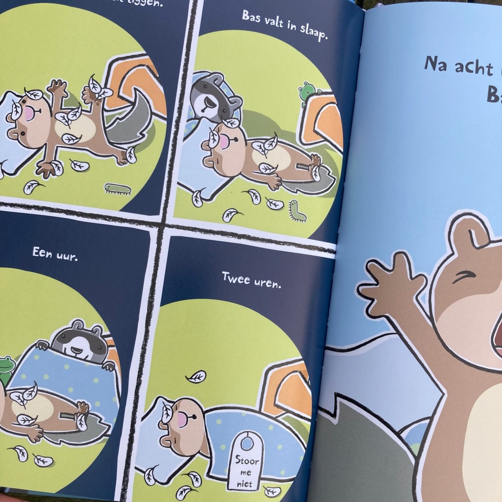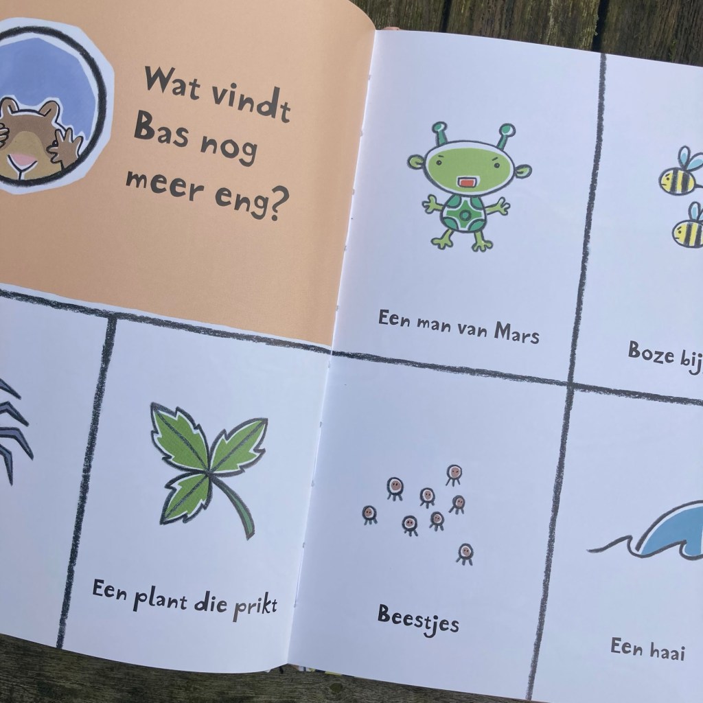 Kennen jullie Bange Bas al? Hij is een eekhoorn die van alles bang is en speelt de hoofdrol in een nieuwe reeks voor eerste lezers. De reeks bestaat op dit moment uit drie boekjes om AVI niveau E3. De boekjes hebben een kleurrijke lay-out, die echt aanzet tot lezen. In elk boek ligt de focus op een van de angsten van Bas. Zo durft hij niet naar buiten te gaan, durft hij geen vrienden te maken en is hij bang om te gaan slapen.