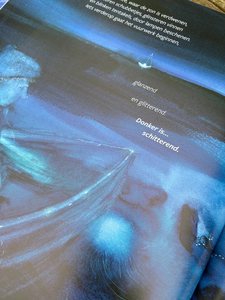 Bette Westera’s vertaling tilt de tekst naar een bijzonder niveau. De taal is rijk, uitdagend en prachtig opgebouwd, met woorden die uitnodigen tot verkennen en verwerven. Dit boek sluit daardoor naadloos aan bij het nieuwe, kennisrijke curriculum in het Vlaamse kleuteronderwijs, waarin rijke taal en thematische verdieping centraal staan. Donker is dromen biedt talloze kansen om betekenisvolle gesprekken te voeren over licht, donker, gevoelens, fantasie en alles wat zich tussenin bevindt.
