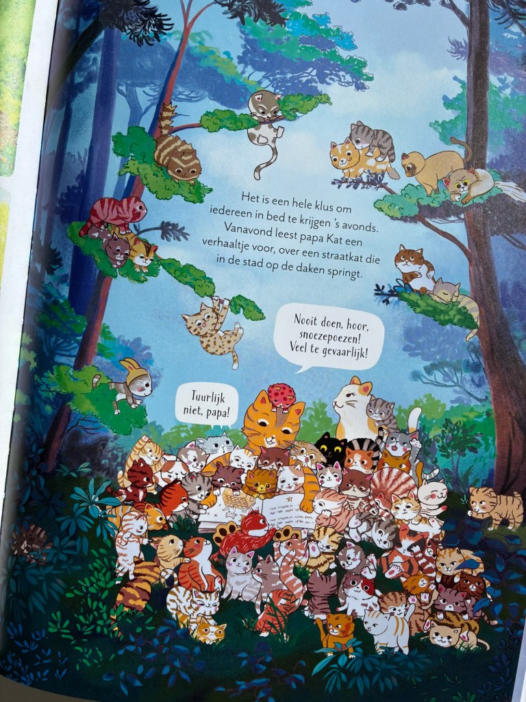 Met wel 100 katjes om te spotten en een overvloed aan kleine, verborgen details, is dit prentenboek een echt feest voor speurneuzen. De humor, hartelijkheid en expressieve tekeningen maken het tot een boek om keer op keer opnieuw in te duiken.