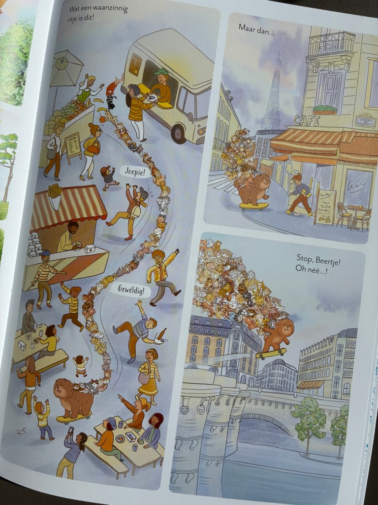 De zoektocht brengt de lezer en de katjes van het bos tot in het bruisende hart van Parijs, waar Peggy Nille’s kleurrijke en rijk gedetailleerde illustraties volledig tot leven komen. Het boek is opgebouwd als een soort stripverhaal, met meerdere illustraties per pagina en zonder tekstballonnen. Zo vertelt elke tekening zelf een stukje van het verhaal en nodigt het boek voortdurend uit tot kijken, zoeken en ontdekken.